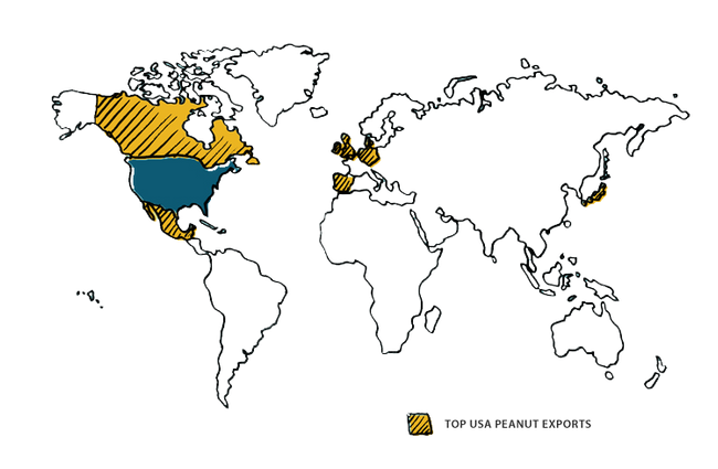 The largest export market for U.S. peanuts in 2019 was Canada, which purchased peanuts valued at more than $179 million, followed by Mexico, which purchased peanuts valued at more than $142 million (according to the USDA's Foreign Agricultural Service). The U.S. reputation for high-quality products and cost-competitiveness have facilitated exports to countries in the European Union, China, Japan and other countries around the world.